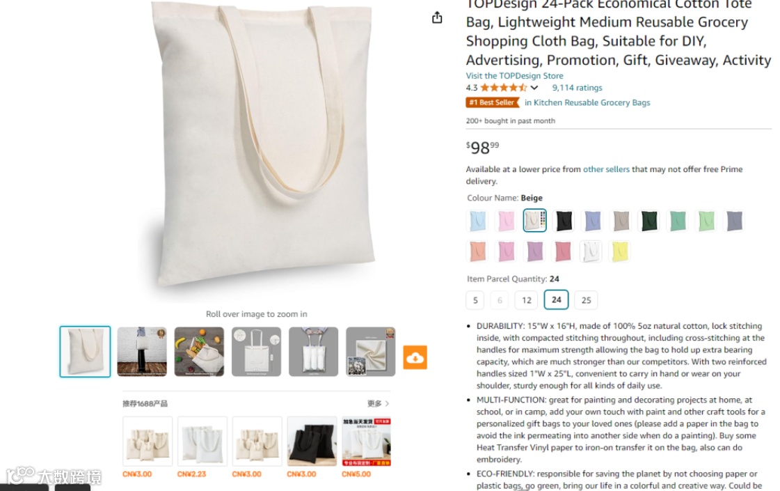 2024.09.12亚马逊选品推荐(仅供参考):帆布袋