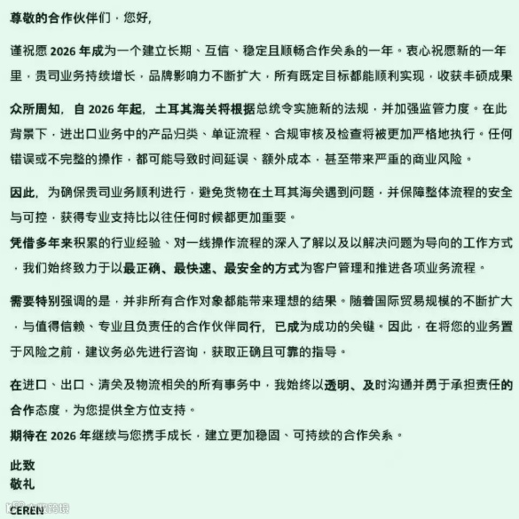 2026,土耳其清关相关的新规定已经出台。我已做了分享,您可以查看了解,土耳其本地清关行如上说。