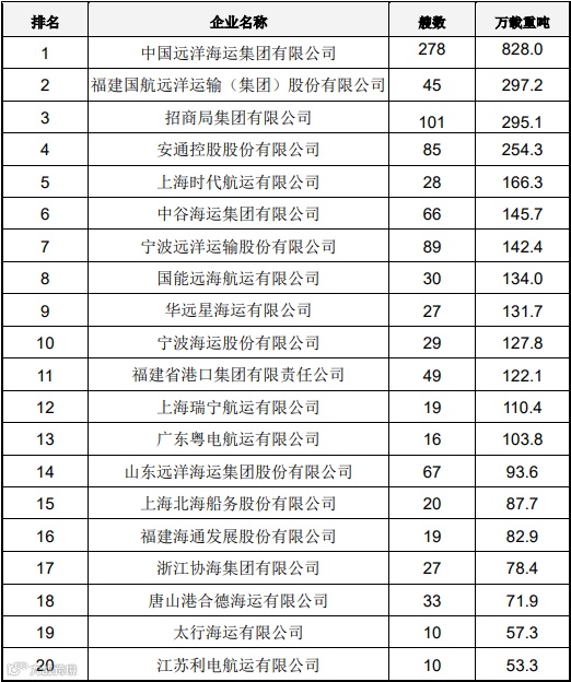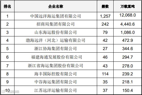 2024年中国航运企业运力排名公示