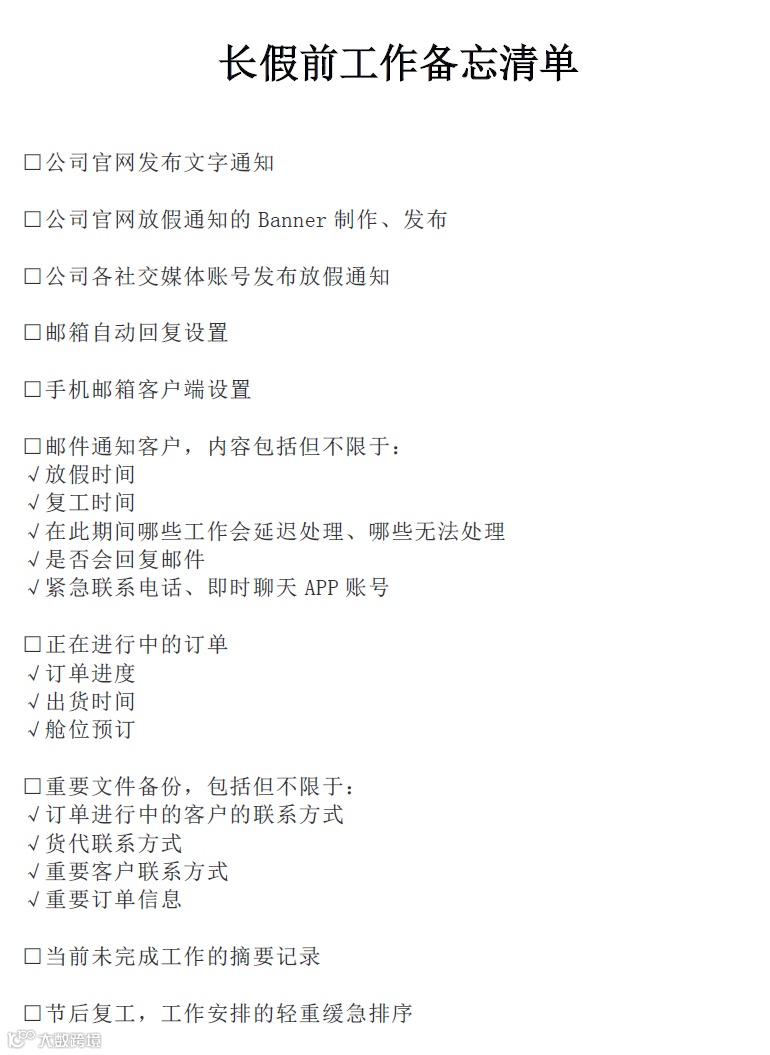写在最后:春节前的外贸工作,拼的不是“催单力度”,而是“规划精度”和“专业温度”。老外贸和新人的差距,就在于能否提前预判风险、精准对接需求,把每一个细节做到位。以上清单、话术和技巧,都是我多年实战总结的“可复制经验”,新人照着做,既能高效搞定节前订单,又能为来年业务打下基础。