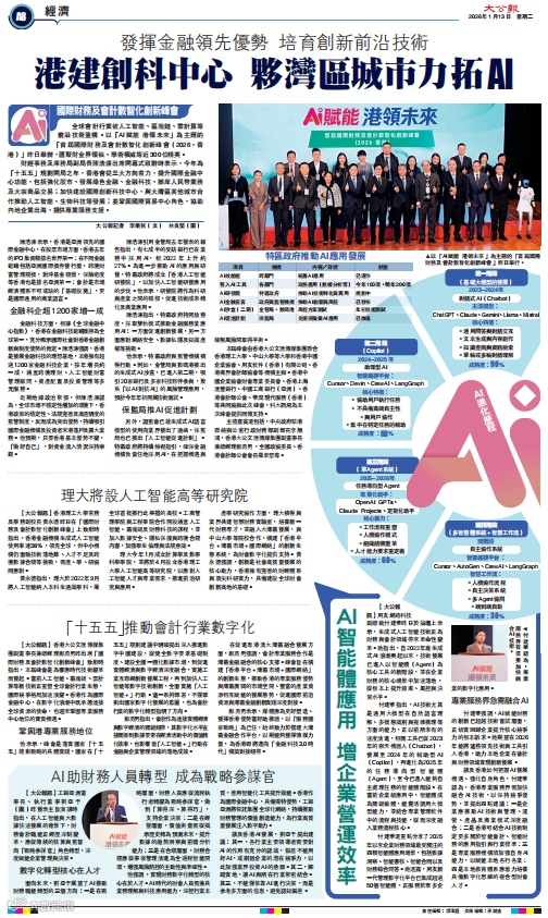 【大公报讯】香港理工大学常务及学务副校长黄永德昨日在“国际财务及会计数智化创新峰会”上致辞时指出,香港金融机构生成式人工智能使用率达38%,领先全球,但中小机构仍面临技术落地难、人才不足及跨境数据合规等挑战,需产、学、研协同应对。