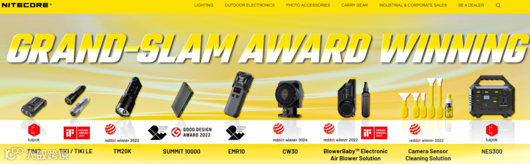 除了利用顶级媒体发稿为品牌背书外,专利、奖项等也是企业的选择之一。Nitecore介绍道,品牌已拥有超过100项专利,荣获IDEA(美国国际设计杰出奖)、德国iF设计奖、红点设计奖、日本G-Mark(优良设计)等奖项,成功镀上顶级工业设计的外衣,再一次用硬实力为品牌发声。