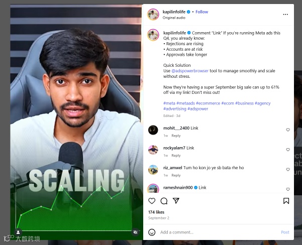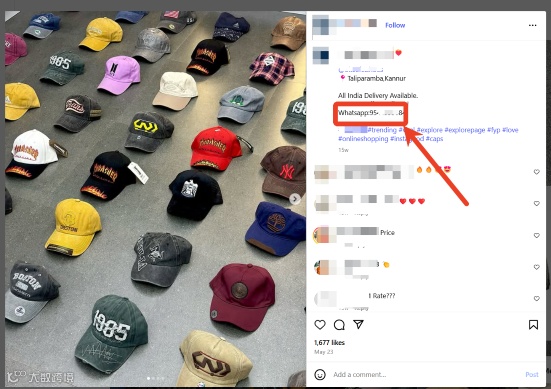 部分潜在客户会在帖子文案里直接标注 WhatsApp 等联系方式,直接联系可以更高效。