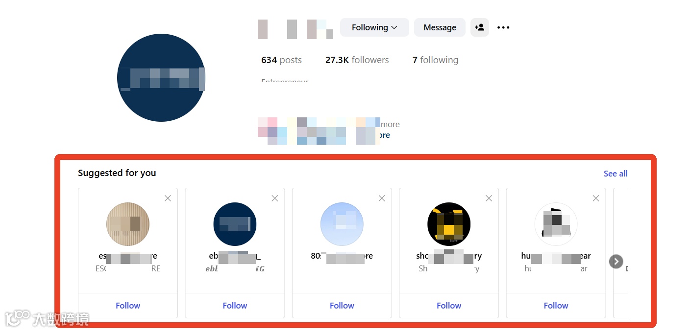 关注潜在客户后,利用 INS 推荐的更多相关博主,能进一步扩大客户开发范围