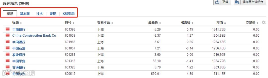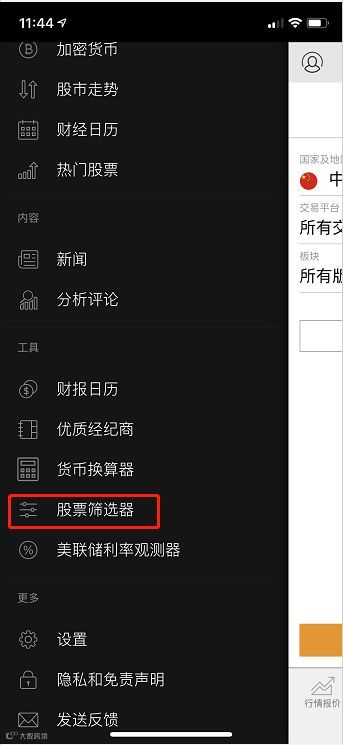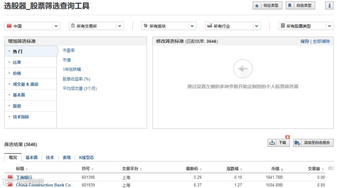 1. 英为财情选股器