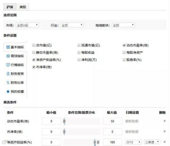 4. 新浪条件选股器