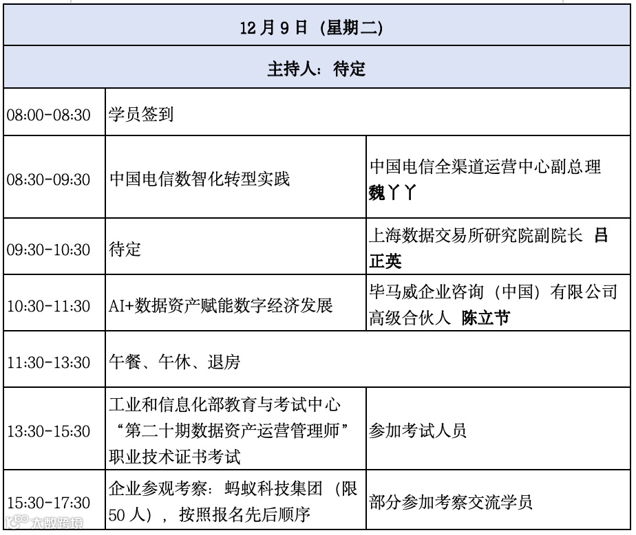 (12月5日全天报到,大会一天,专题论坛一天,培训三天)