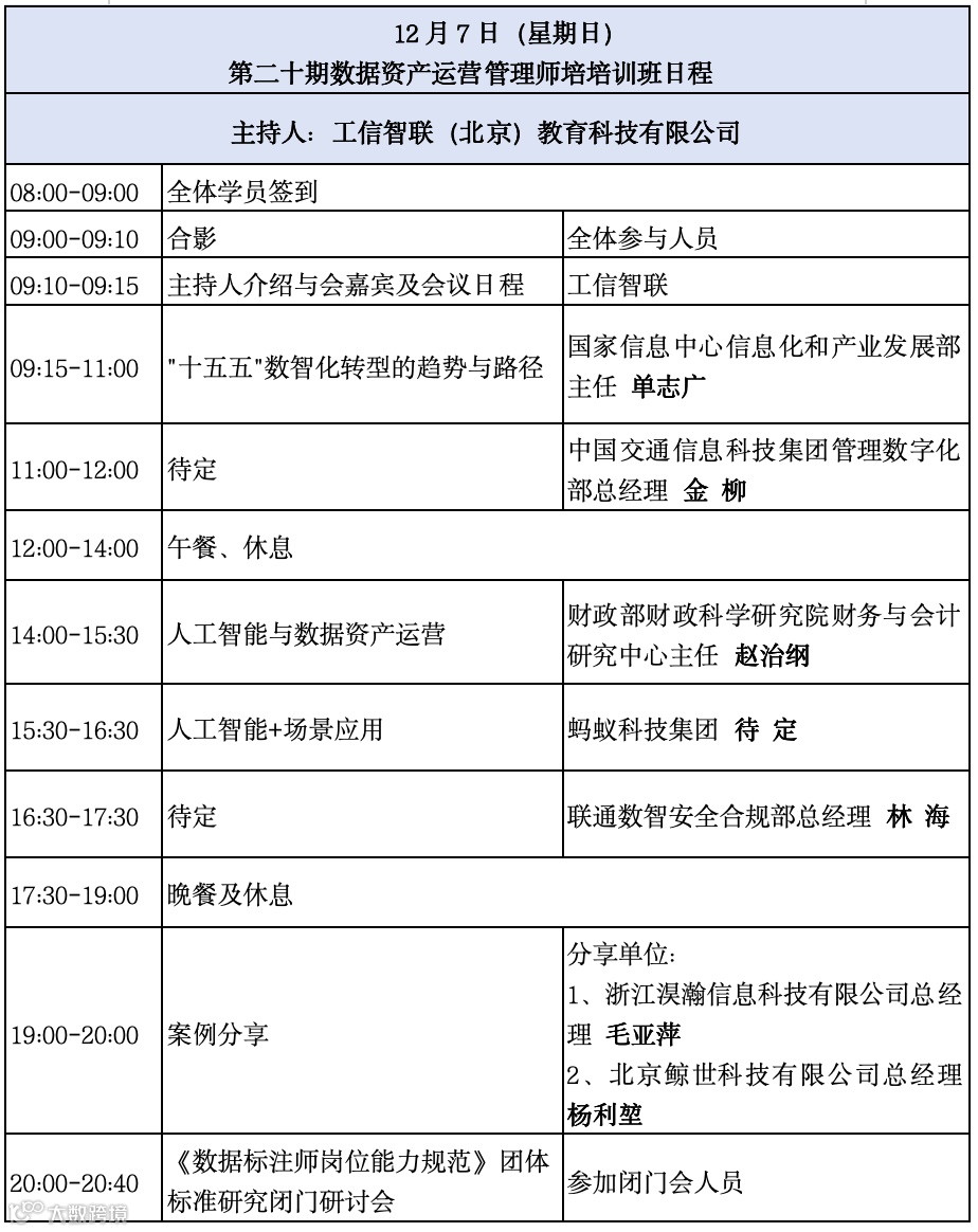 人工智能赋能数字化转型、场景应用和高质量数据集建设暨第二十期数据资产运营管理师高级培训班