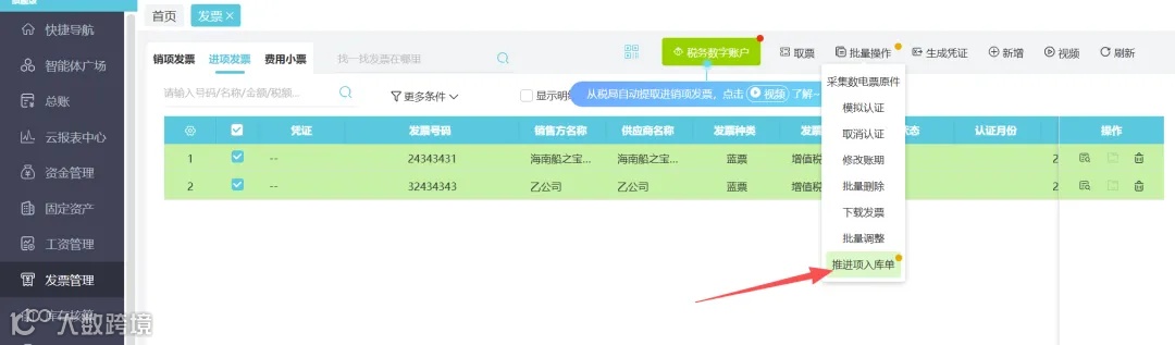 进项发票自动生成采购入库单,销项发票自动生成销售出库单