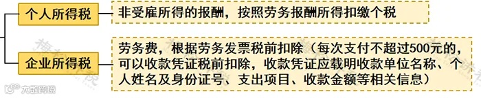 劳务报酬所得则是个人独立从事各种技艺、提供各项劳务取得的报酬。两者的主要区别在于,前者存在雇佣与被雇佣关系,后者则不存在这种关系。因此,如果是非雇员,独立从事劳务活动,应按“劳务报酬所得”项目缴纳个人所得税。