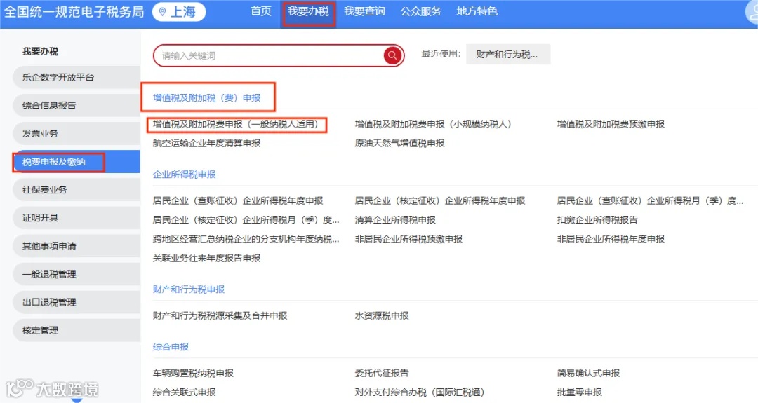 登录【电子税务局】-【我要办税】-【税费申报及缴纳】-【增值税及附加税费申报】,根据实际情况选取对应申报表。
