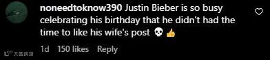 然而,评论区并未一片温馨。不少网友指出,贾斯汀未对妻子的动态点赞或留言,引发“感情冷淡”质疑。