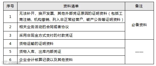 企业在补开、换开发票、其他外部凭证过程中,因对方注销、撤销、依法被吊销营业执照、被税务机关认定为非正常户等特殊原因无法补开、换开发票、其他外部凭证的,可凭以下资料证实支出真实性后,相应支出可以或追补至该支出发生年度税前扣除(追补年限不得超过五年)。