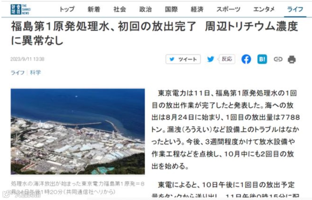 据日本《产经新闻》9月11日报道,第一批核污染水全部排放完成,这意味着7788吨核污染水已经流入太平洋。