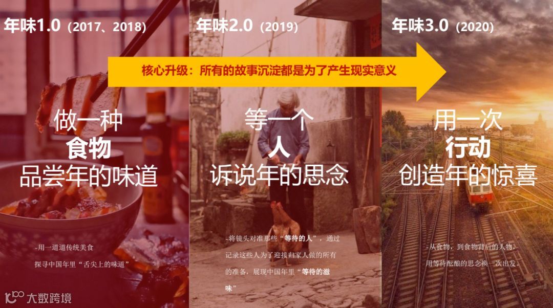 2017年开始,二更就已经利用短视频的独特内容形式,记录关于“年”的味道。第一季和第二季借助了一道道传统美食,探寻中国年里“舌尖上的味道”。第三季则关注那些在故乡翘首等待的家人,记录他们为了迎接归家人的所有准备,展现中国年里“等待的滋味”。从2107年走到2019年,《年味》系列已经累计3.4亿总播放量,获得超6亿微博超话总阅读量,亿万网友通过镜头读懂中国人自己的回家故事。