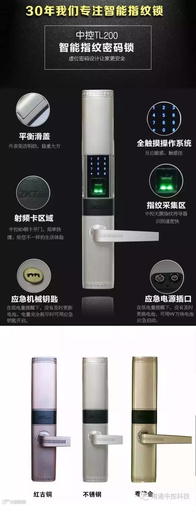 【南通中控-产品】指纹密码锁 防盗锁 中控科技智能锁TL200