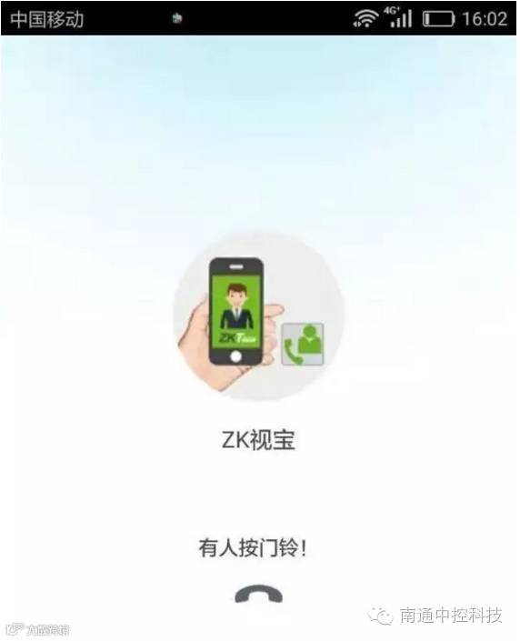 住户手机或平板电脑上的“监视”键,屏幕上自动显示单元门口情况的影象。