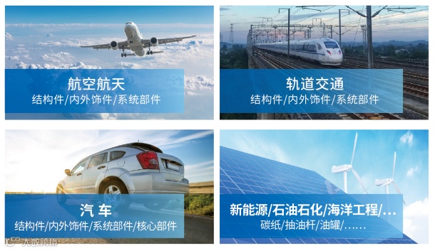 面向航空航天、汽车、轨道交通、新能源等行业的复合材料产品批量制造