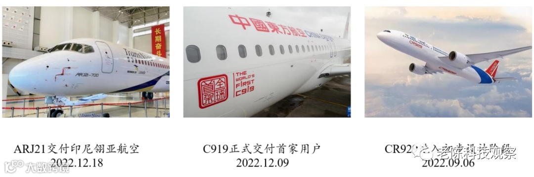 (4)大飞机再起航:中国商飞公司于 2008 年成立,标志着中国大型客机研制项目正式启动。中国商飞是实施国家大型飞机重大专项中大型客机项目的主体, 也是统筹干线飞机和支线飞机发展、实现我国民用飞机产业化的主要载体。
