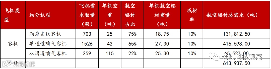 铝合金市场需求:根据《铝材力推三大“国之重器”遨游蓝天》,假设铝材料利用率为 10%,ARJ21 的铝制零部件超过飞机净重 75%,C919 飞机铝制零部件占总净重约 65%,CR929 飞机铝材占总净重 22%,未来 20 年国产民机带来的铝材需求约 61 万吨,年均约 3.1 万吨。