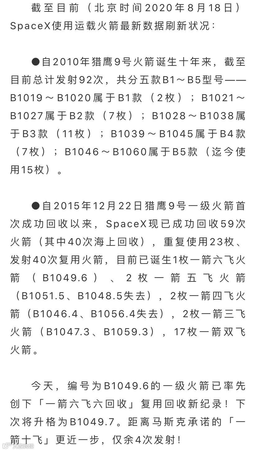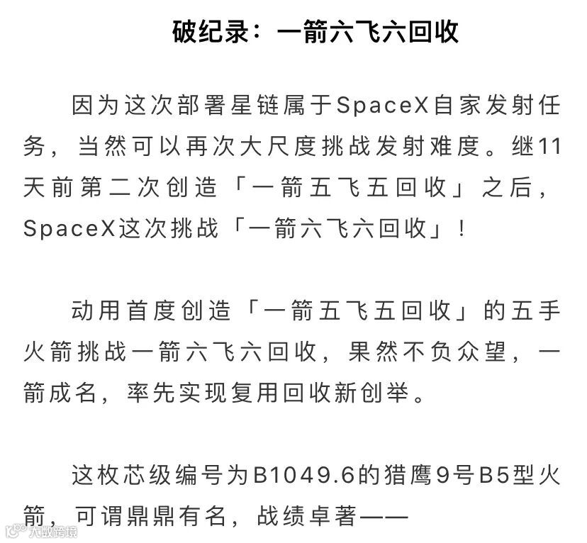 今天,神勇再度降临太空叉头上。继11天前第二次创造「一箭五飞五回收」之后,SpaceX这次发射创下复用回收新纪录「一箭六飞六回收」!距离马斯克承诺的「一箭十飞」更近一步,仅余4次!