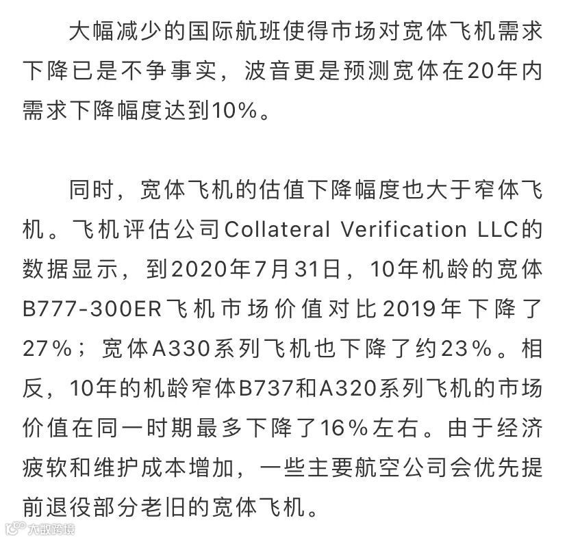 宽体客机受影响最大