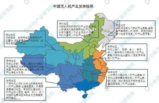 我国无人机企业分布广泛,当前,华南和华东无人机产业发展较为迅猛,集聚企业最多。其中,广东形成以深圳为核心的珠三角无人机产业集群,也是我国无人机集聚度最高的地区。华东地区形成以常州、无锡、台州、阜阳、湖州、芜湖等为代表的无人机产业集群,依托制造业基础,从无到有布局无人机产业。