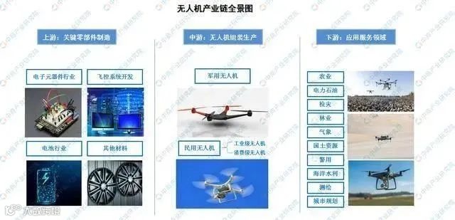 无人机作为智能机器人的一种,产业链条、技术链条都很长。上游为无人机研发、飞控系统、机载设备以及发动机等关键零部件制造,中游为无人机组装生产,下游为应用技术服务。在整条产业链中,上下游产业附加值较高,仅能够进行组装而无力生产关键零部件的厂家将会逐渐遭到淘汰,只有掌握包括飞控系统、无人机航空发动机在内的核心零部件研发制造,或者提供客户所需应用服务的企业才能在未来的无人机行业中立于不败之地。