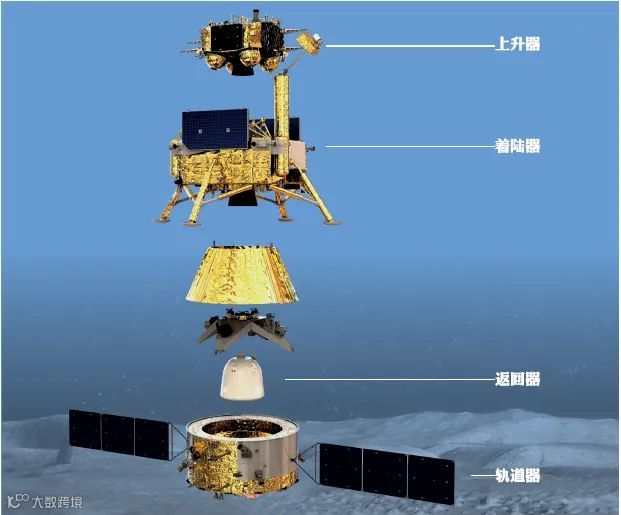 完成采样之后,嫦娥五号上升器要在月球进行起飞发射,在月球轨道与轨道器和返回器进行交会对接,将月球样本转移至返回器里,然后返回地球。