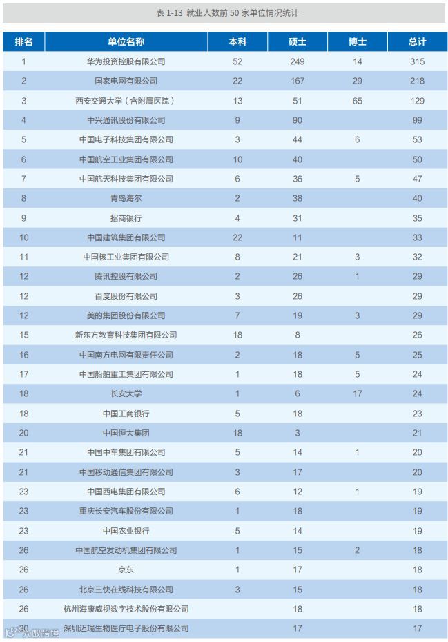 其他知名高校的毕业生也有很大一部分都进了华为。