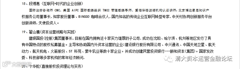 招生中丨工商管理(EMBA)总裁高级研修班 清大资本运营金融论坛 1周前