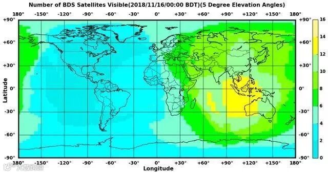 ▲2018年11月16日北斗卫星全球可见情况,目前亚太地区已经逐步点亮。(图自:beidou.gov.cn)