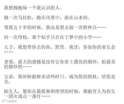 他说:“每一天都是赚的,没有什么好遗憾。珍惜每一分每一秒,是我现在最大的感受。”