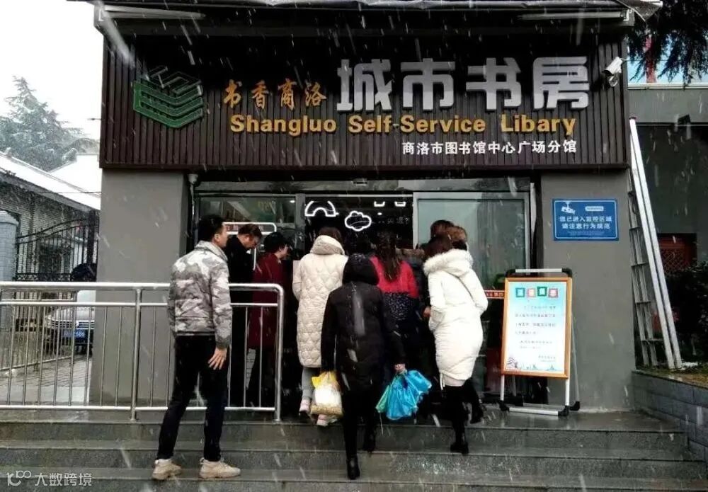 市文旅局党组书记、局长杨长江(右)对上海阿法迪助力书香商洛城市书房建设表示肯定。