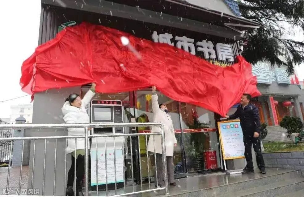 市文旅局党组书记、局长杨长江(右),市文旅局党组成员、副局长李秋霞(左),市图书馆馆长彭萍莉共同为城市书房揭牌。