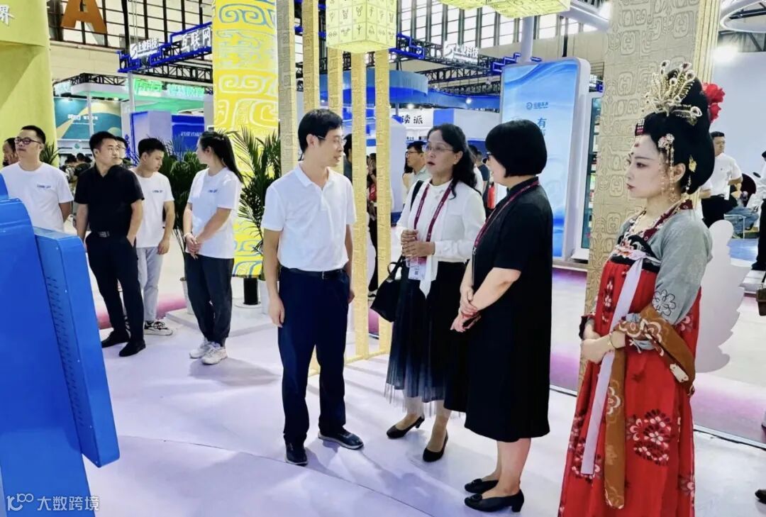 色彩上采用黄色代表中原文化的辉煌,蓝色代表阿法迪数字科技力量,两者相得益彰,和谐统一,活泼而又充满神秘力量。现场还设有专属打卡点,有身着各式古装的工作人员穿梭其间,仿佛从古画中走出。
