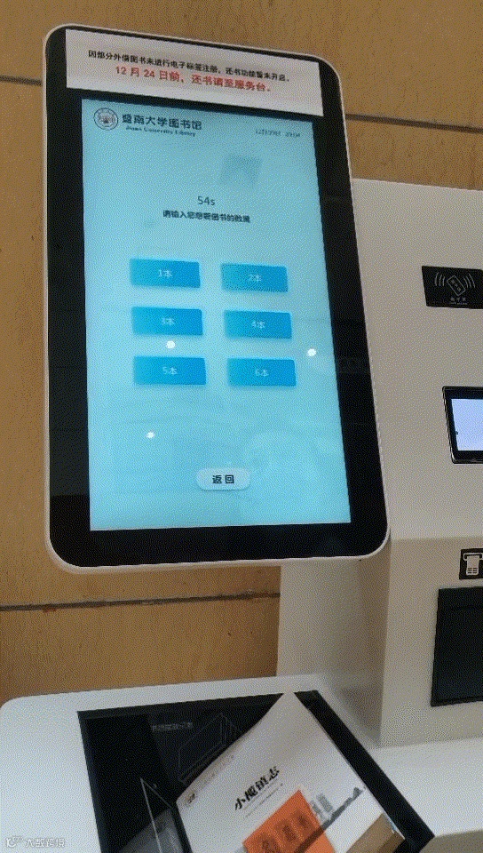 目前石牌校区正式启用的自助借还书机,位于二楼大厅两侧。新的借还书机功能丰富,纸电同步借阅,读者可以使用微信扫码、刷校园卡、人工输入等多种方式登录自助办理借还图书业务,系统还会自动推荐相关电子图书,扫码即可将电子图书带走。除了在线办理借还外,读者还可以续借图书、查询个人借阅信息及缴纳违章罚款。