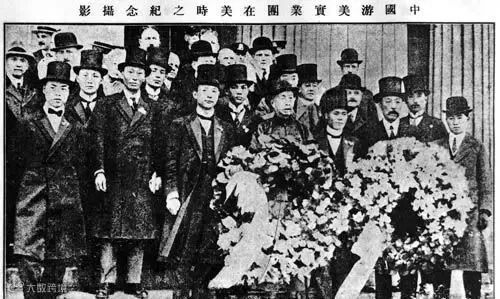 巴拿马万国博览会期间,中国政府组织中国商业报聘团赴美,张弼士任团长,黄炎培任秘书。图为张弼士与团员们合影(前排右起第四人为张弼士)