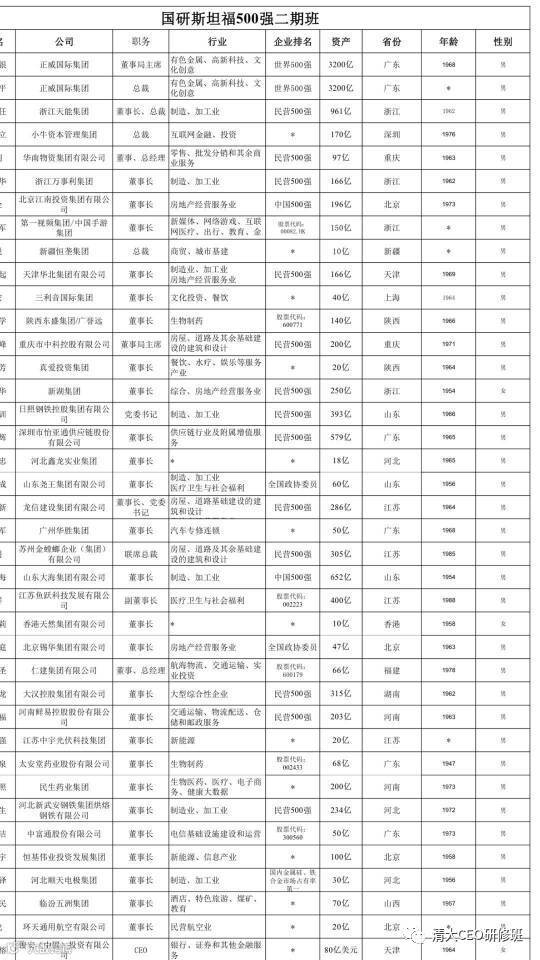 斯坦福500强商业领袖后E董事长班 项目定位:搭建最大的民营500强掌门同学生态社群,为同学及企业提供深度服务: