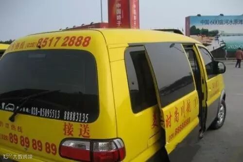 在成都机场有个很特别的景象,当你下了飞机以后,你会看到机场外停了百部休旅车,后面写着“免费接送”。