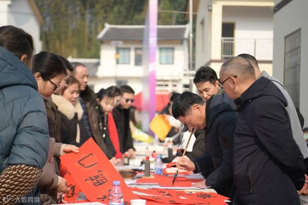 书法家在“赶村”现场为游客免费书写春联。(陈阵锋 摄)