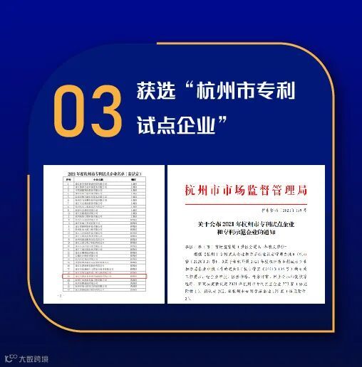 11月,经线上填报、书面报送、区县推荐、专家评审、网站公示等层层筛选,杭州市市场监督管理局认定天演维真为“2021年度杭州市专利试点企业”。此次认证,全面体现了权威机构对天演维真知识产权管理能力和技术创新能力等各方面综合实力的高度认可。