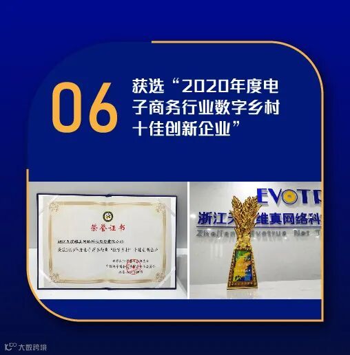 6月,在2021数字贸易高峰论坛暨“电商百强”表彰大会上,天演维真作为以数字技术赋能浙江各地产业发展的农村电商企业代表,上榜“浙江电商百强”榜单,被评选为“农村电商企业”,并获得了表彰。