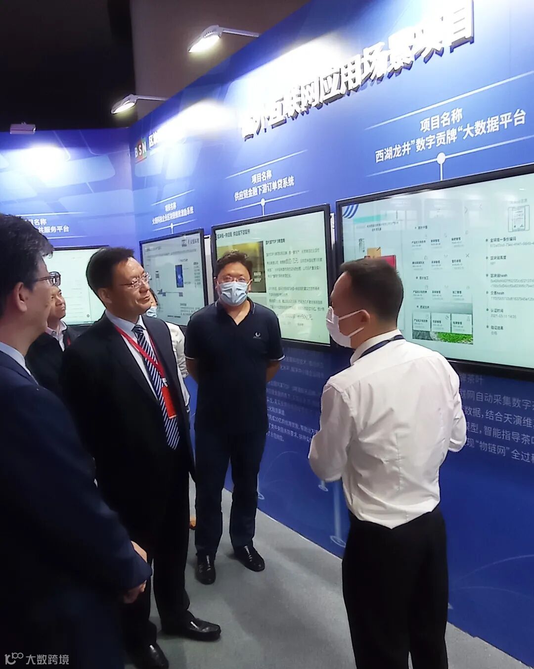 会上,天演维真打造的西湖龙井“数字贡牌”大数据平台作为区块链应用示范项目,迎来了长沙市委副书记、市长郑建新一行的考察指导。天演维真CTO易飞现场汇报了天演维真近年来在农业数字化服务领域融合区块链、人工智能、物联网技术的落地应用成果,重点介绍了西湖龙井“数字贡牌”大数据平台的建设情况。