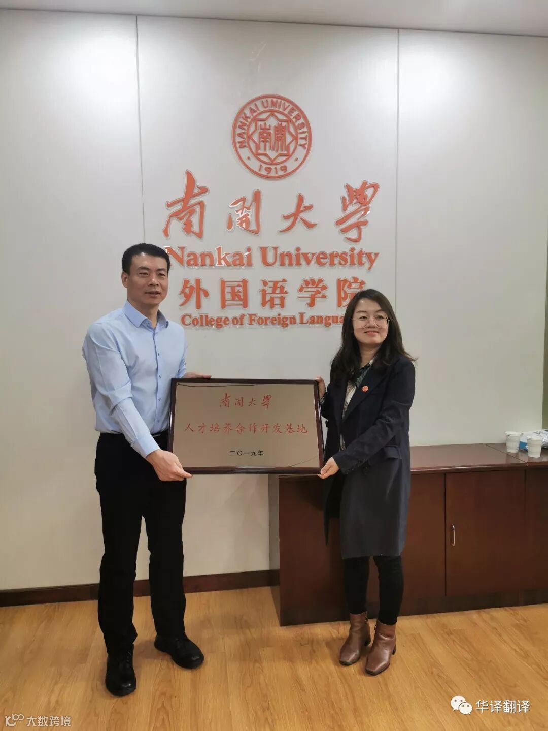12月6日上午,华译与南开大学签约仪式在南开大学外国语学院举行,华译总经理刘智宽先生、副总经理李光先生及南开大学外国语学院副书记兼副院长相羽女士、研究生院周文钰主任及MTI英语专业、俄语专业代表参加了会谈及签约仪式。