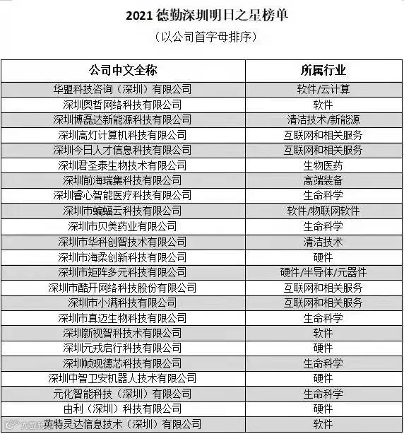 举行2021德勤深圳高科技高成长20强(下称“深圳20强”)及德勤深圳明日之星颁奖典礼并揭晓评选结果。荣登“深圳20强”三甲的企业分别是:云希谷科技、风变科技、欧科云链网络科技。华盟科技等23家获评德勤深圳明日之星企业。