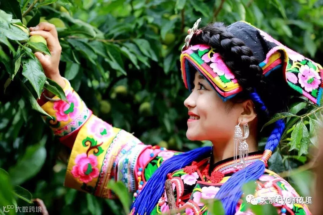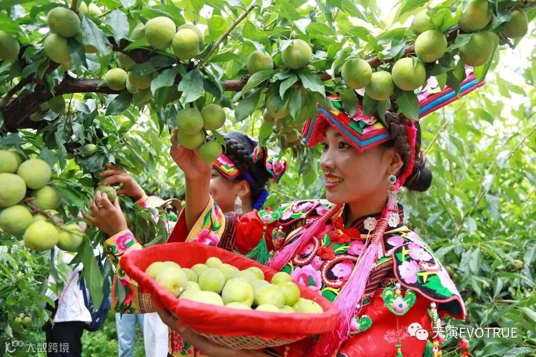 羌族姑娘现场采摘最新鲜的茂县李