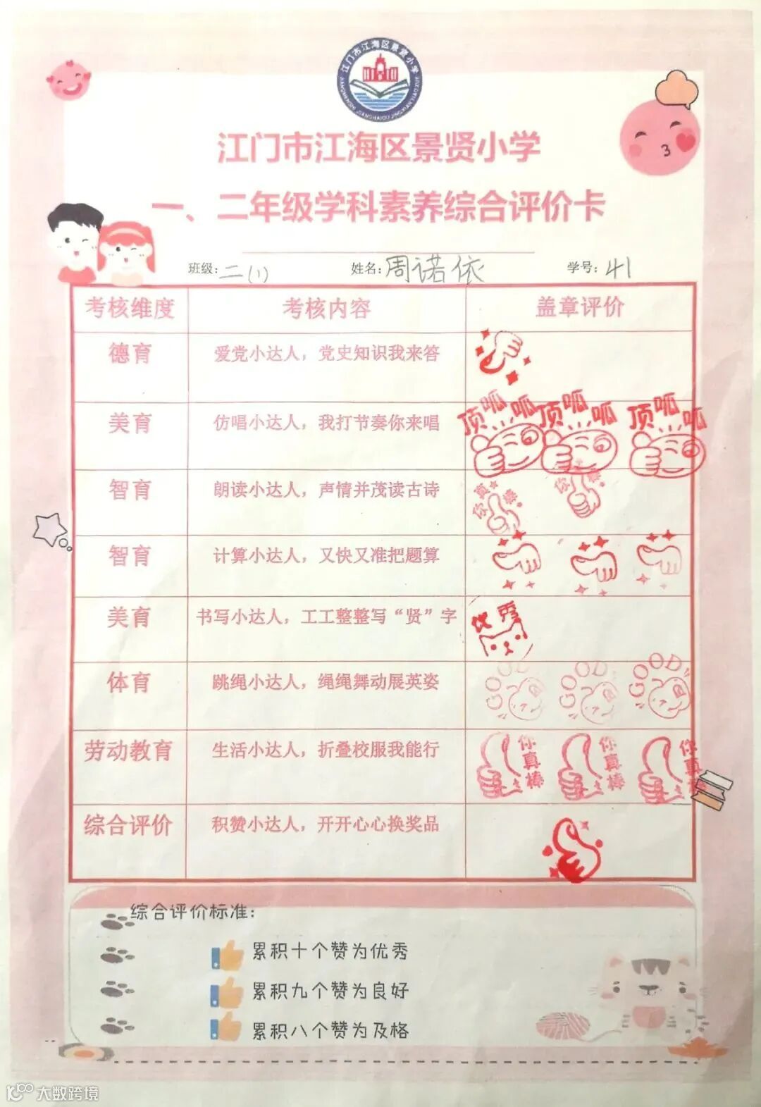 上学期景贤小学的期末“慧学趣评”。