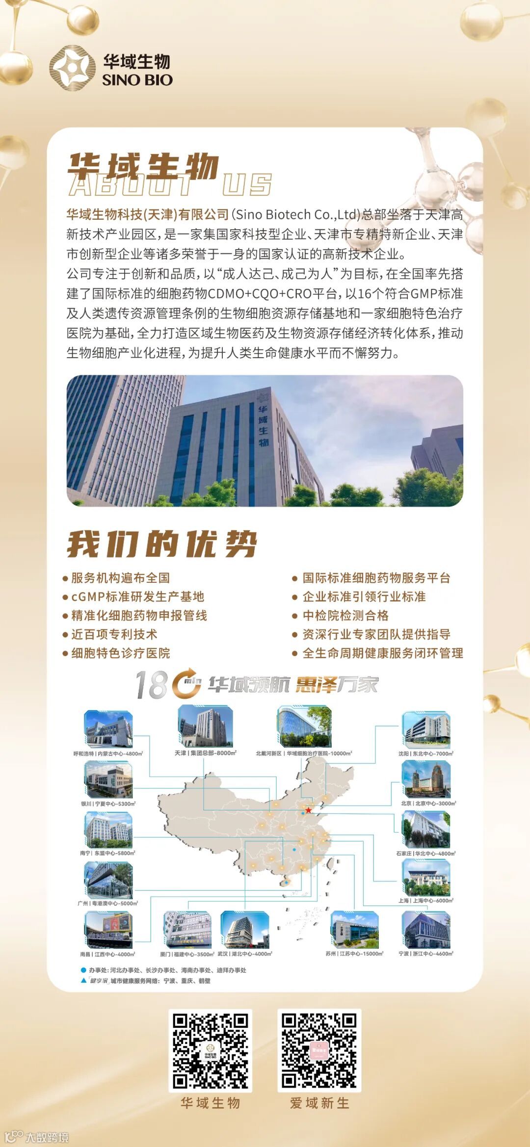华域生物科技(天津)有限公司致力于生物资源存储、制备以及核心抗体等原辅料的研发与生产;健康管理平台等领域。