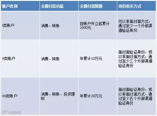 根据去年12月公布《办法》,支付机构应根据客户身份认证情况将个人网络支付账户分为三类,并规定了各类账户的信息认证标准。